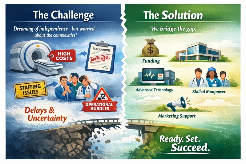 Setting up a diagnostic center involves high capital costs, regulatory hurdles, staffing challenges, and ongoing operational demands. These barriers often delay or derail promising ventures.
